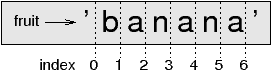 Chapter 8 Strings8.1 A string is a sequenceA string is a sequence of characters. You can access the characters one at a time with the bracket operator: >>> fruit = 'banana' >>> letter = fruit[1] The second statement selects character number 1 from fruit and assigns it to letter. The expression in brackets is called an index. The index indicates which character in the sequence you want (hence the name). But you might not get what you expect: >>> print letter a For most people, the first letter of >>> letter = fruit[0] >>> print letter b So b is the 0th letter (“zero-eth”) of You can use any expression, including variables and operators, as an index, but the value of the index has to be an integer. Otherwise you get: >>> letter = fruit[1.5] TypeError: string indices must be integers 8.2 lenlen is a built-in function that returns the number of characters in a string: >>> fruit = 'banana' >>> len(fruit) 6 To get the last letter of a string, you might be tempted to try something like this: >>> length = len(fruit) >>> last = fruit[length] IndexError: string index out of range The reason for the IndexError is that there is no letter in ’banana’ with the index 6. Since we started counting at zero, the six letters are numbered 0 to 5. To get the last character, you have to subtract 1 from length: >>> last = fruit[length-1] >>> print last a Alternatively, you can use negative indices, which count backward from the end of the string. The expression fruit[-1] yields the last letter, fruit[-2] yields the second to last, and so on. 8.3 Traversal with a for loopA lot of computations involve processing a string one character at a time. Often they start at the beginning, select each character in turn, do something to it, and continue until the end. This pattern of processing is called a traversal. One way to write a traversal is with a while loop: index = 0