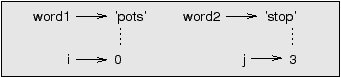 iteration, the frame for ![]() I took a little license by arranging the variables in the frame and adding dotted lines to show that the values of i and j indicate characters in word1 and word2. Exercise 8