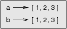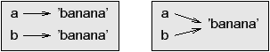10.10 Objects and valuesIf we execute these assignment statements: a = 'banana' b = 'banana' We know that a and b both refer to a string, but we don’t know whether they refer to the same string. There are two possible states: ![]() In one case, a and b refer to two different objects that have the same value. In the second case, they refer to the same object. To check whether two variables refer to the same object, you can use the is operator. >>> a = 'banana' >>> b = 'banana' >>> a is b True In this example, Python only created one string object, and both a and b refer to it. But when you create two lists, you get two objects: >>> a = [1, 2, 3] >>> b = [1, 2, 3] >>> a is b False So the state diagram looks like this: ![]() In this case we would say that the two lists are equivalent, because they have the same elements, but not identical, because they are not the same object. If two objects are identical, they are also equivalent, but if they are equivalent, they are not necessarily identical. Until now, we have been using “object” and “value” interchangeably, but it is more precise to say that an object has a value. If you execute a = [1,2,3], a refers to a list object whose value is a particular sequence of elements. If another list has the same elements, we would say it has the same value. 10.11 AliasingIf a refers to an object and you assign b = a, then both variables refer to the same object: >>> a = [1, 2, 3] >>> b = a >>> b is a True The state diagram looks like this: ![]() The association of a variable with an object is called a reference. In this example, there are two references to the same object. An object with more than one reference has more than one name, so we say that the object is aliased. If the aliased object is mutable, changes made with one alias affect the other: >>> b[0] = 17 >>> print a [17, 2, 3] Although this behavior can be useful, it is error-prone. In general, it is safer to avoid aliasing when you are working with mutable objects. For immutable objects like strings, aliasing is not as much of a problem. In this example: a = 'banana' b = 'banana' It almost never makes a difference whether a and b refer to the same string or not. 10.12 List argumentsWhen you pass a list to a function, the function gets a reference